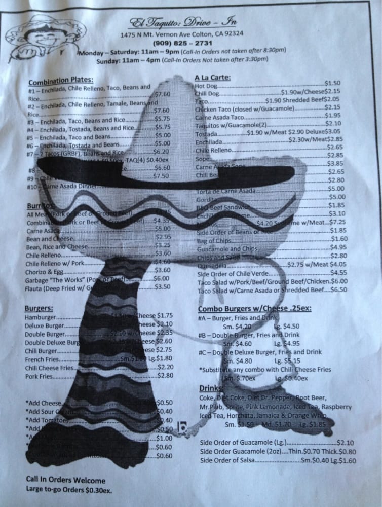 El Taquito Drive-In Menu